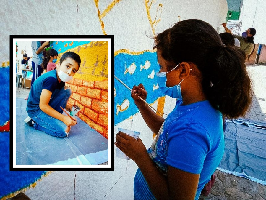 Casa de Cultura Plazuelas y el Instituto Estatal de Cultura acercan el muralismo en los ranchos de Pénjamo, un esfuerzo del maestro Rene Linares, al que se suman niños y padres de familia.