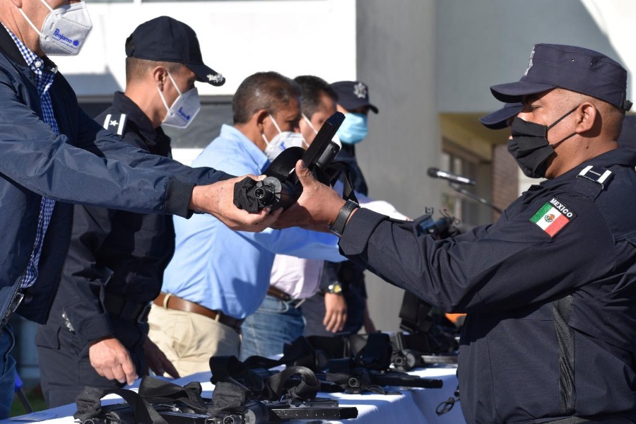 “Tener elementos mejor capacitados y equipados, para un mejor servicio y respuesta a la ciudadanía”, dijo el alcalde Juan José García en la entrega de armamento a elementos de la Dirección de Seguridad Pública.