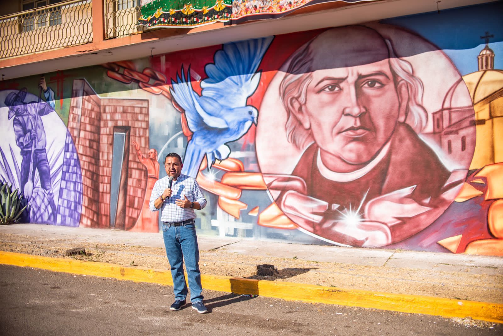 Pénjamo, Gto; Ricardo Gonzáles García «Clever» y Mario Campos «Boss», unieron su talento al plasmar en un mural, la vida y origen del orgulloso penjamense Don Miguel Hidalgo y Costilla.