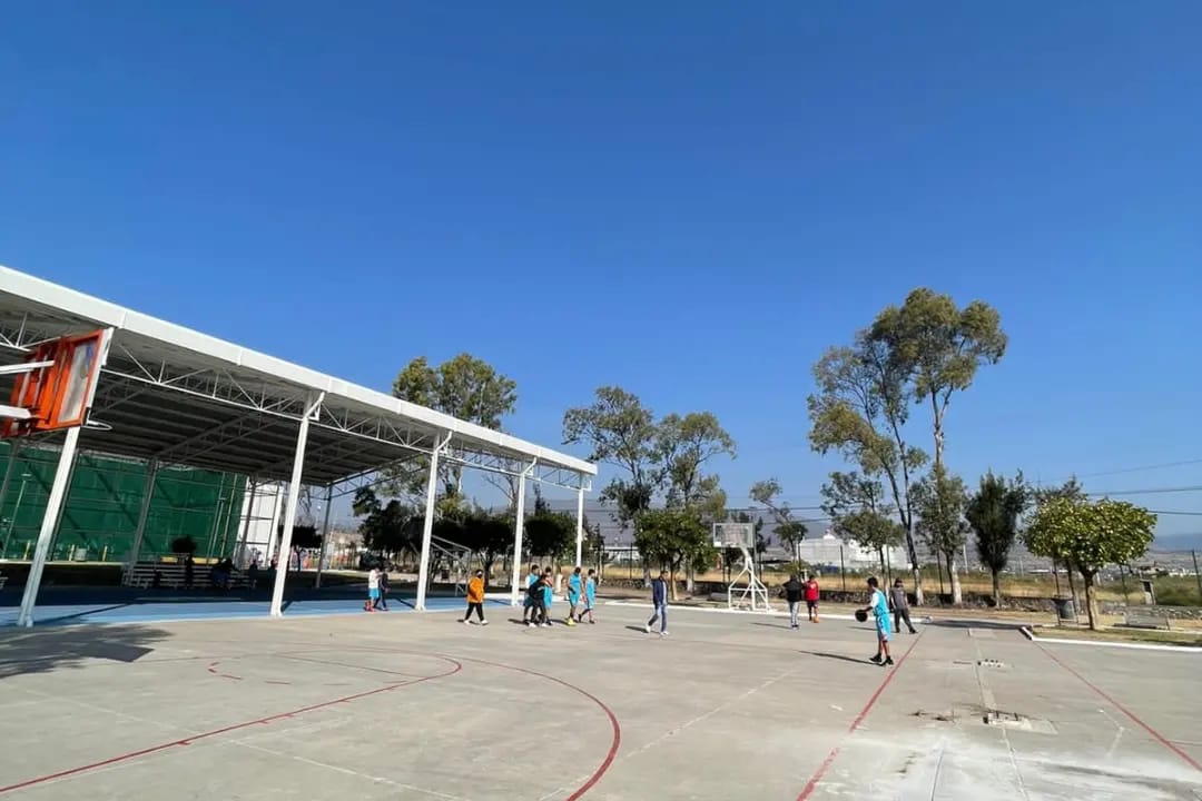 Los trabajos consisten en la construcción de la techumbre a base de columnas metálicas y cubierta de lámina, cimentación, instalación eléctrica con reflectores y luminarias leds, tableros de básquetbol y porterías de futbolito, pintado de piso de cancha con líneas de cancha de basquetbol, voleibol y badminton, bajadas pluviales y cisterna para captación de aguas pluviales.