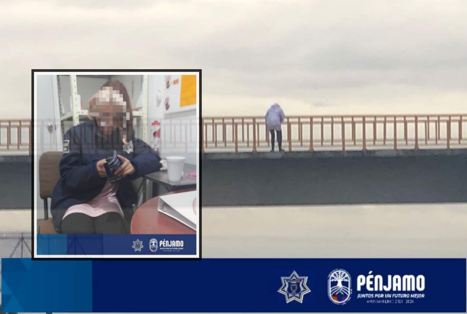 25 de octubre del 2021 – Elementos de la Policía de Género de Pénjamo, lograron rescatar a una mujer de 19 años que intentó saltar del puente de la Purísima de Ramírez que se encuentra sobre la carretera federal 1110.