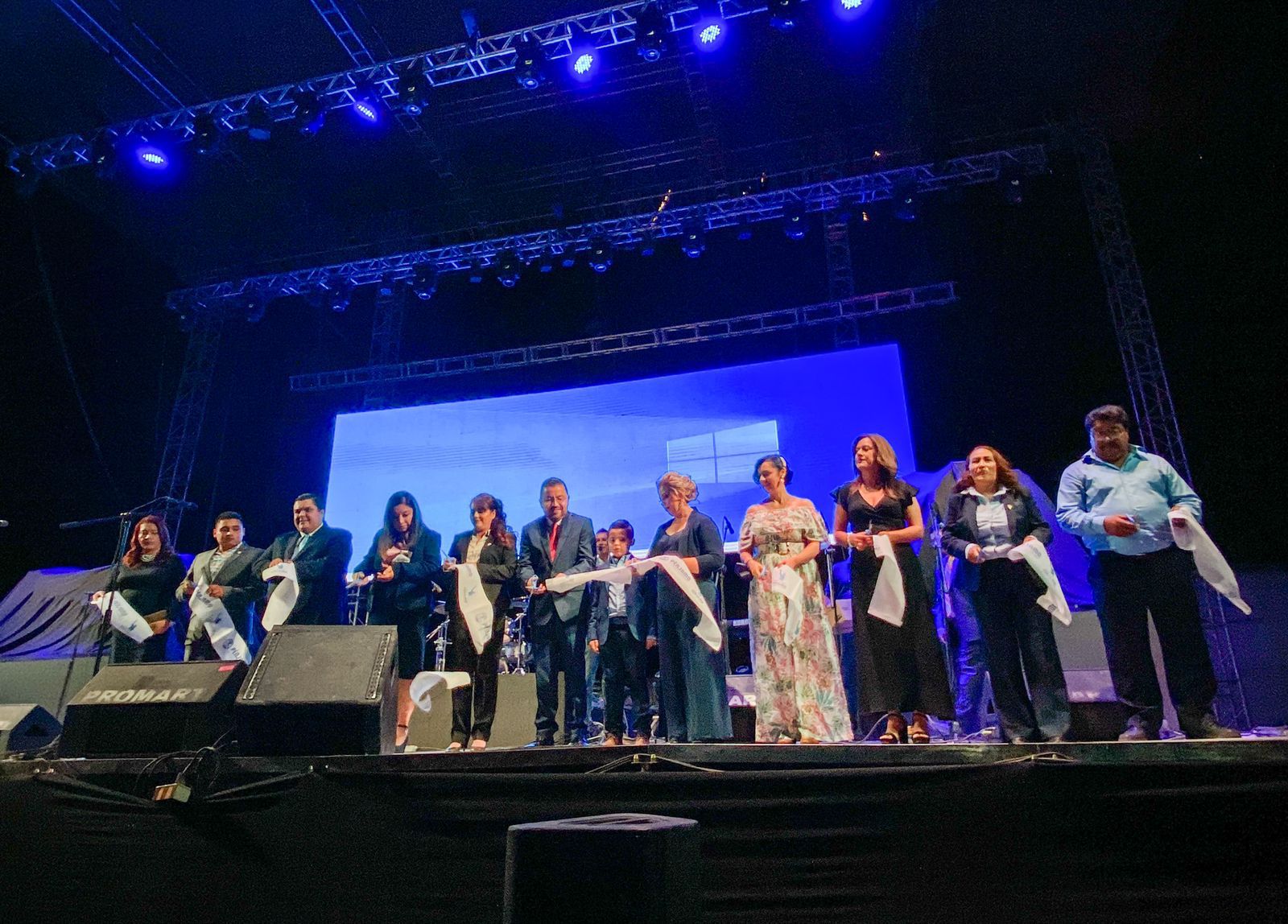 El Alcalde Goyo Mendoza acompañado de su esposa Nancy Rodríguez y del Ayuntamiento, acudió al Teatro del Pueblo en las instalaciones de la feria, para realizar la inauguración oficial.