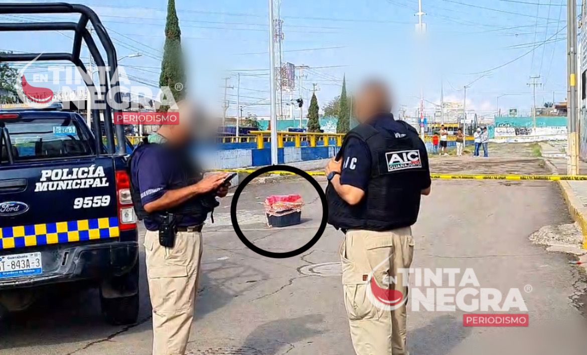 El recipiente color negro fue dejado a un lado del paso a desnivel de la avenida Obregón en esta ciudad de Irapuato, sobre el camino terracero adyacente que conecta a las colonias Los Hoyos y Plan Guanajuato.