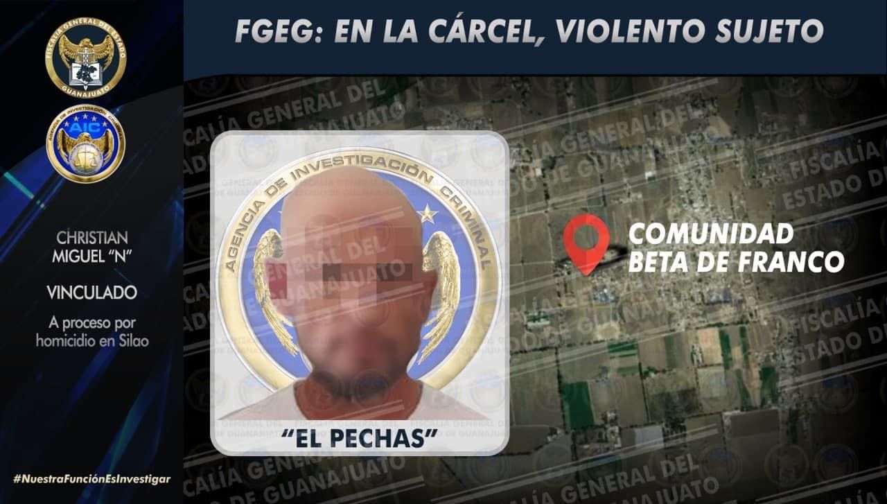 Silao, Gto., 12 de diciembre de 2021.- Un peligroso sujeto fue capturado por la Fiscalía General del Estado bajo cargos de homicidio. CHRISTIAN MIGUEL, conocido como “El Pechas”, junto con un cómplice, se llevaron a un hombre en una motocicleta del Fraccionamiento La Curva, y lo torturaron hasta matarlo. El ofendido fue localizado, desollado, dos días después en un baldío ubicado en la comunidad Beta de Franco.