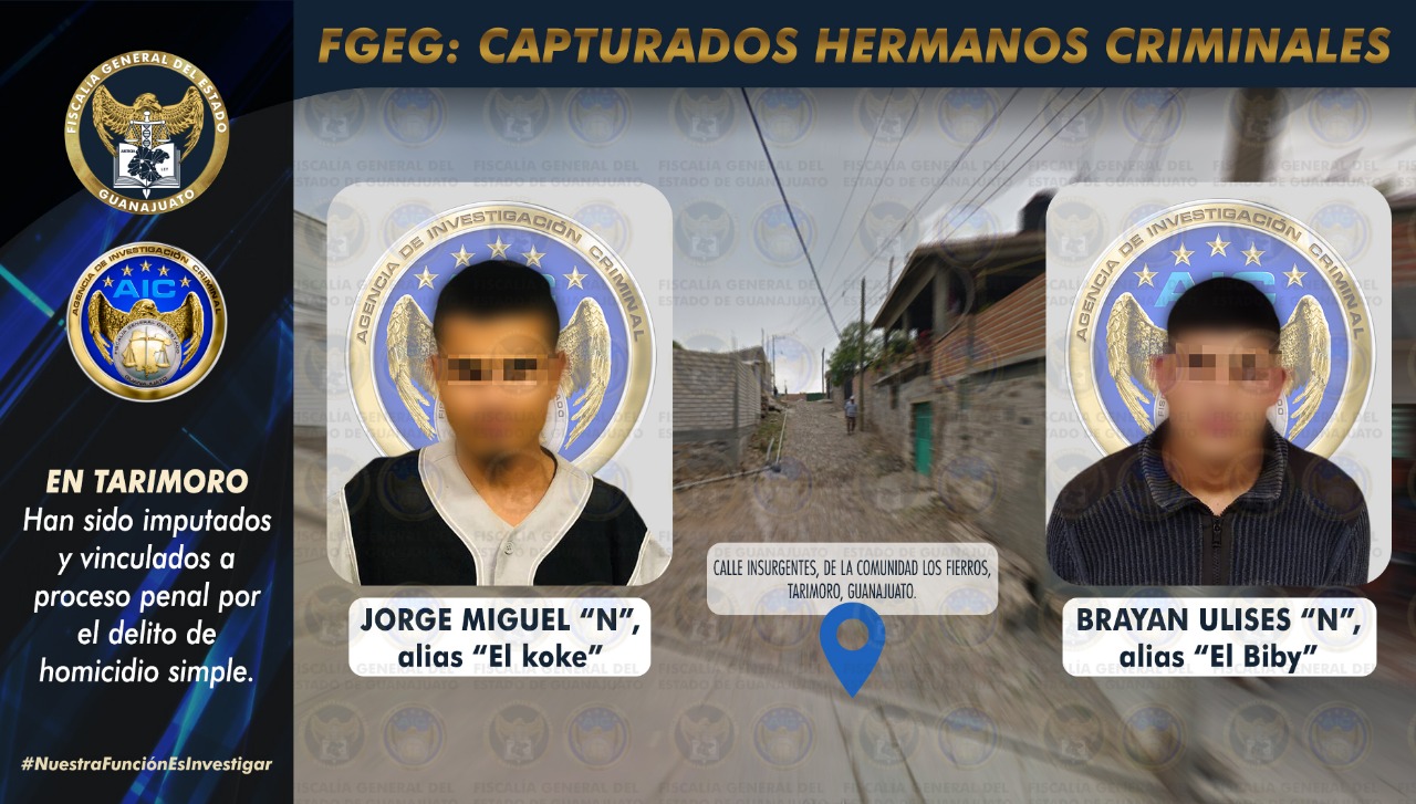 La investigación de los hechos reportados a esta Fiscalía el pasado 10 de octubre de 2021, por la localización de un masculino sin vida, sobre la calle Insurgentes, a un costado del jardín principal de la comunidad de Los Fierros, en este municipio, quien presentaba diversas lesiones por arma blanca, condujo a la detención de dos sujetos apodados “El Koque” y “El Bibi”, de 21 y 20 años, respectivamente.
