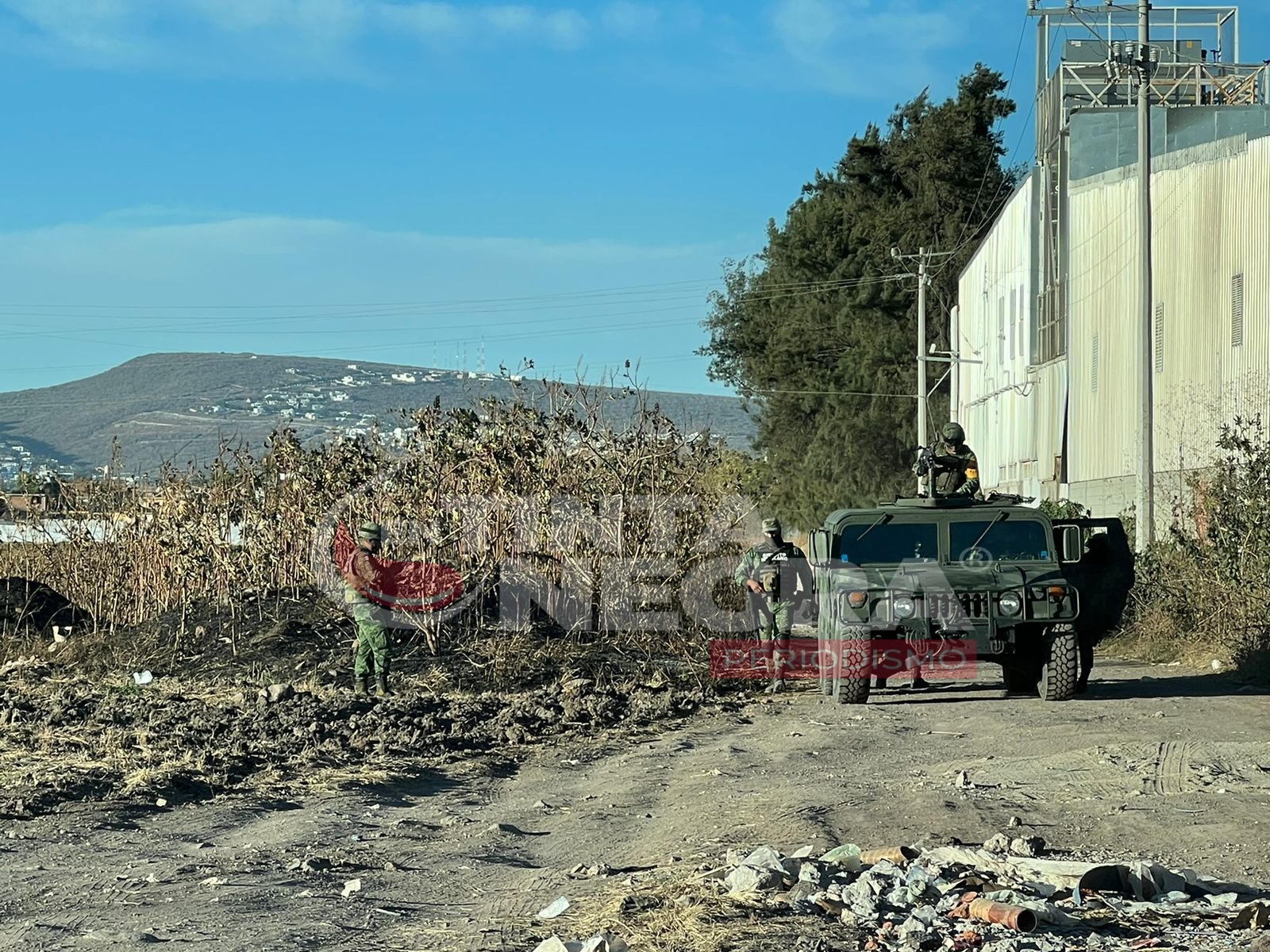 El reporte al sistema de emergencias se realizó a las 15:30 horas, por lo que al lugar arribaron elementos de la Policía Municipal y Ejército Mexicano, localizando entre montones de tierra el cuerpo.