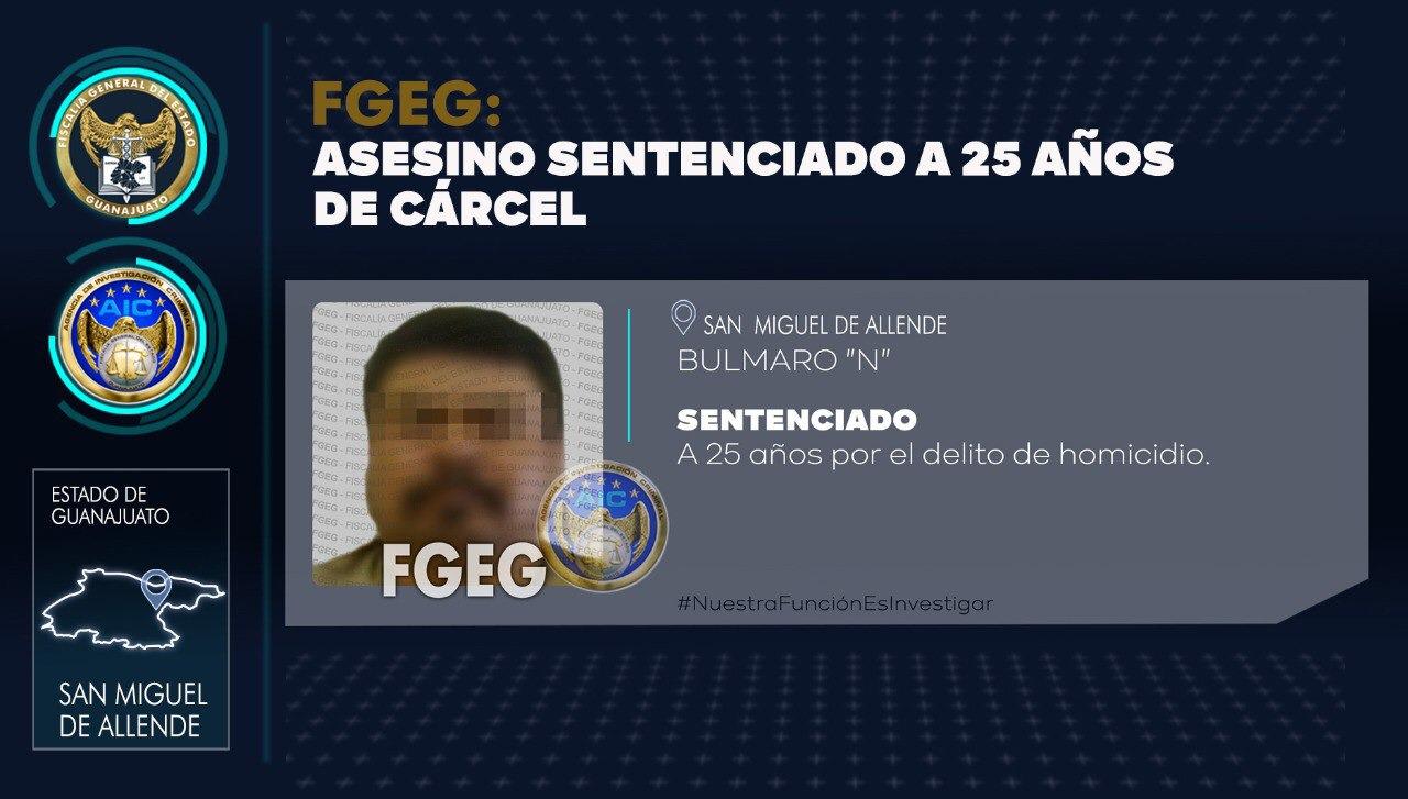 San Miguel de Allende, Gto. 9 de abril de 2022.- Un Agente del Ministerio Público adscrito comprobó que el sentenciado mató a un hombre por disparo de arma de fuego.