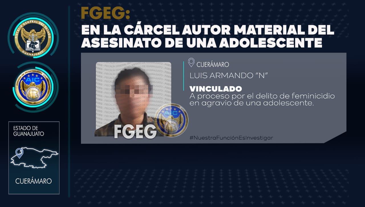 Cuerámaro, Gto. 20 de junio de 2022.- El Ministerio Público acreditó con datos de prueba pertinente y útil el esclarecimiento y averiguación del asesinato de una adolescente de 16 años. El autor material intentó evadir la acción de la justicia, pero ha sido detenido y vinculado a proceso penal, acusado por el delito de feminicidio. El ahora imputado golpeó en la cabeza a la joven y con un objeto semirrígido de forma rectangular, la asfixió, al presionar su cuello.