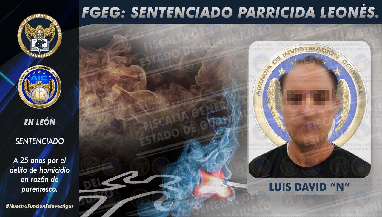 León, Gto. 11 de enero de 2022.- En juicio de procedimiento abreviado, un hombre fue sentenciado a 25 años en la cárcel, al ser hallado culpable en el delito de homicidio en razón de parentesco. LUIS DAVID “N”, de 45 años, lesionó mortalmente a su progenitor en los primeros minutos del año 2021. El anciano de 70 años murió cuando recibía atención médica en un hospital a consecuencia de un traumatismo craneoencefálico, así como lesiones con arma blanca en tórax y abdomen, y quemaduras de segundo y tercer grado.