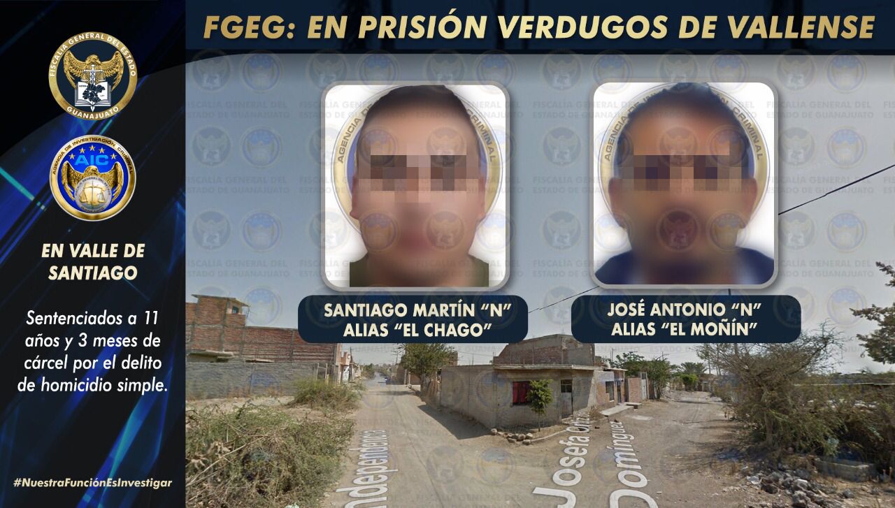Valle de Santiago, Gto. 21 de noviembre de 2021.- Ejecutaron a un ciudadano bajo el supuesto de ser un transgresor, pero en realidad cometieron un acto vengativo por lo cual hoy fueron sentenciados a 11 años y 3 meses de prisión. “El Chago” y “El Moñín”, integrantes de un grupo delictivo asesinaron a un joven de 18 años con disparos en el cráneo y lo arrojaron en la calle Josefa Ortiz de Domínguez esquina calle Independencia de la Colonia La Loma.