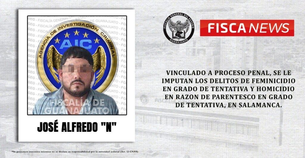 En audiencia, tras vencer la duplicidad del término constitucional, el Agente del Ministerio Público obtuvo vinculación a proceso penal en contra de JOSÉ ALFREDO “N”, por los delitos de tentativa de homicidio en razón de parentesco y tentativa de feminicidio, por lo cual el imputado permanecerá en prisión, en espera de ser sentenciado por sus actos criminales.