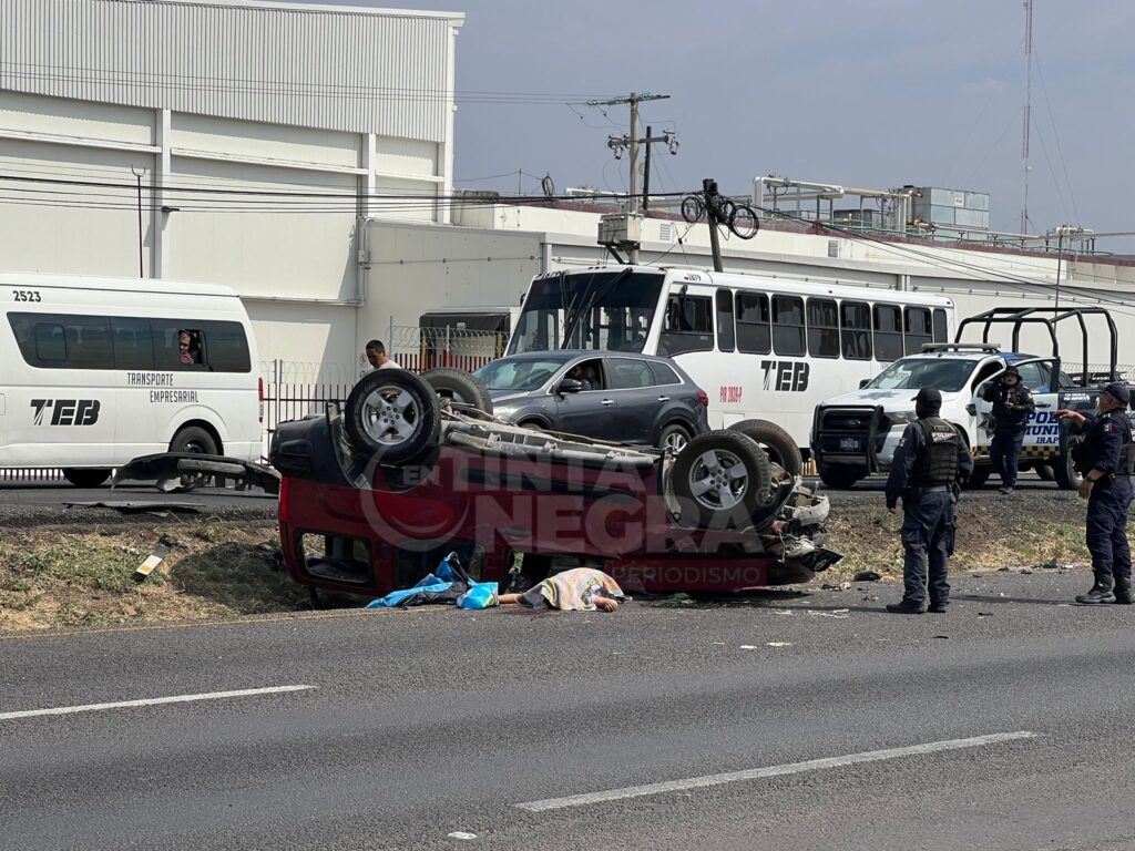 Irapuato, Gto; 08 de junio del 2024.- Un hombre sin vida y tres heridos, una mujer y dos menores, dejó como saldo la volcadura de una camioneta en la carretera Abasolo-Irapuato a la altura de la empresa Gillette.