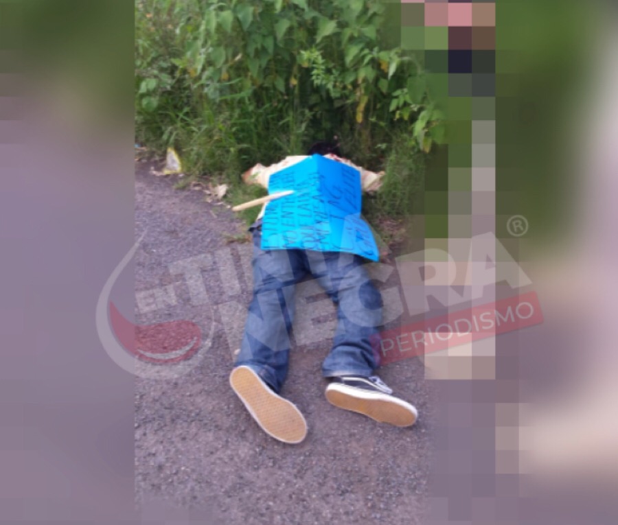 El cadáver del masculino tenía clavada sobre la espalda una cartulina color azul con un mensaje de advertencia de un grupo delictivo informó hoy la sub procuraduría de justicia región B.