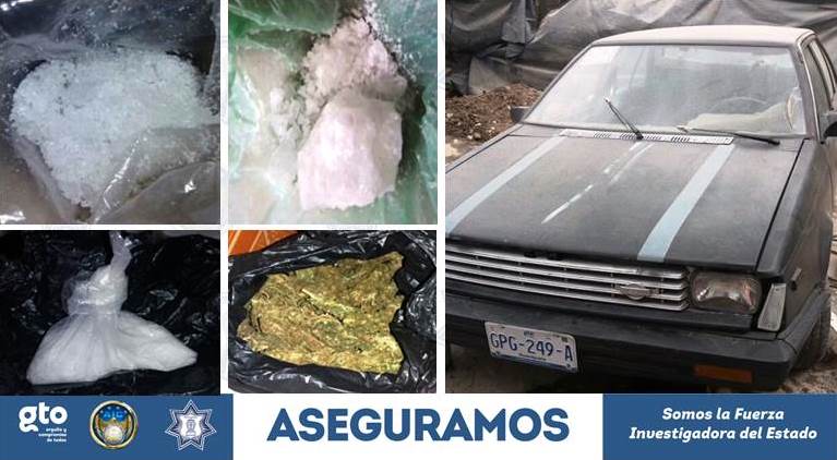Salamanca, Gto. 02 de febrero de 2018.- Mediante un operativo entre la Procuraduría General de Justicia del Estado (PGJE) y la Secretaría de Seguridad Pública del Estado (SSPE) se llevó a cabo una orden de cateo donde se aseguraron cientos de dosis de drogas, así como un vehículo robado dentro de una vivienda en el municipio de Salamanca.