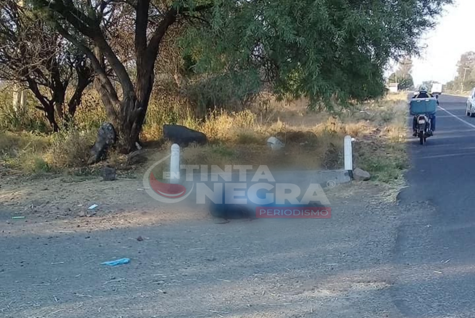 El cuerpo se localizó antes de las 8 de la mañana a un costado de la carretera estatal Irapuato-Pueblo Nuevo frente a la comunidad El Palomar.