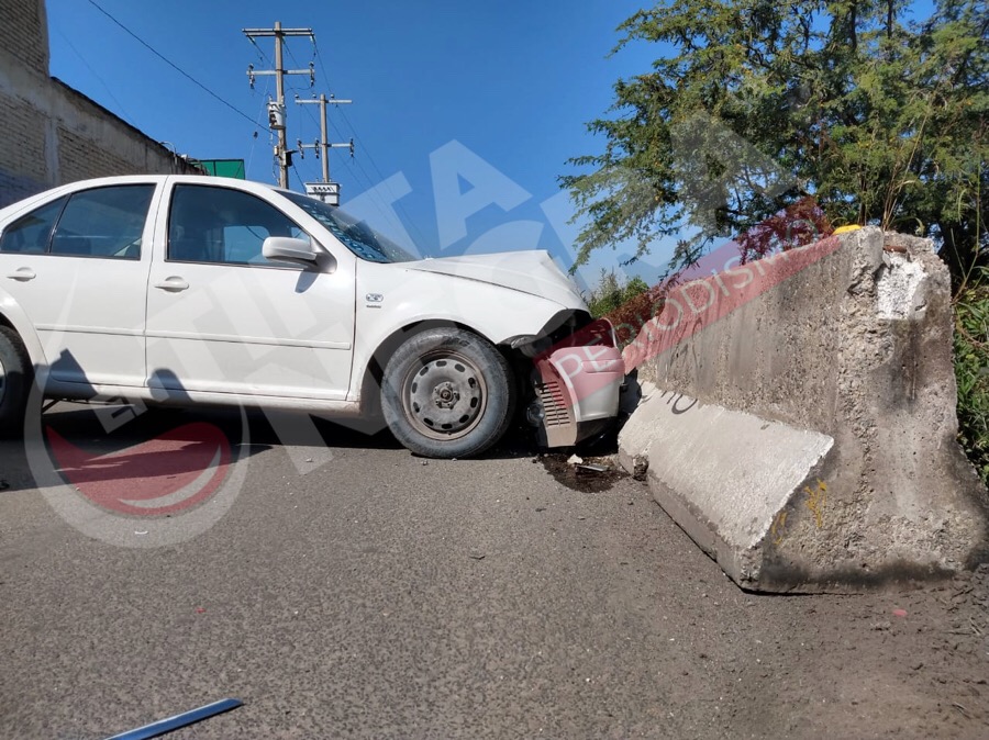 Irapuato.-Un hombre resultó lesionado al estrellarse con su automóvil contra una guarnición de concreto colocadas a un costado del canal «Antonio Coria» .
