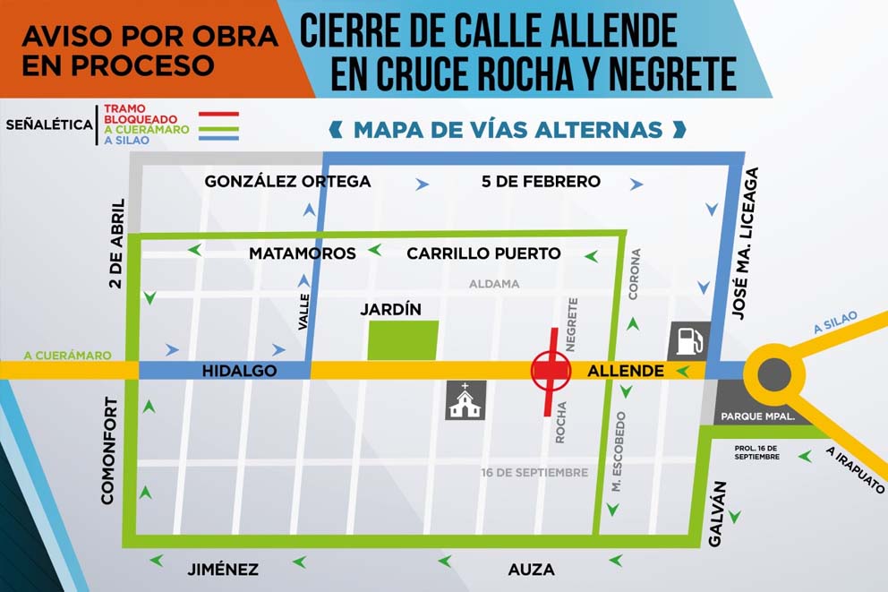 DIRECCIÓN DE OBRAS PÚBLICA CERRARÁ VIALIDAD EN EL CRUCE ALLENDE ESQUINA NEGRETE- ROCHA .-Romita