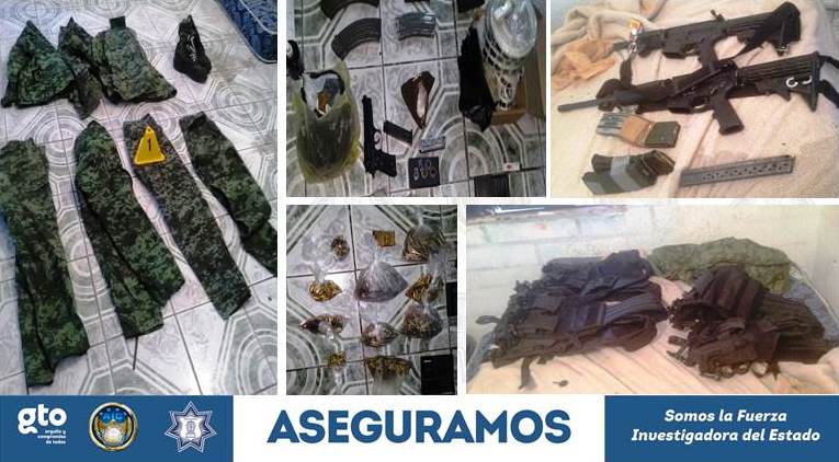 Al ingresar, se logran asegurar tres armas de fuego largas conocidas como R-15 y AK-47, y un arma corta de 9mm, cargadores abastecidos y decenas de cartuchos útiles de varios calibres. Al continuar la inspección ministerial, también se hallaron cuatro chalecos tácticos color negro, sin placas; cuatro pantalones tácticos color verde y cinco camisolas tácticas color verde.
